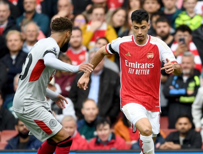 وسجل تومياسو الهدف الخامس لأرسنال في الدقيقة السادسة من الوقت بدل الضائع من أسيست محمد النني الذي هيأ الكرة بالرأس لـ تومياسو قبل أن يسكنها الشباك.