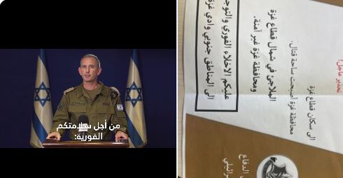 وقال المتحدث باسم الجيش في البيان الذي نُشر عبر منصات التواصل الاجتماعي: «إلى سكان شمال قطاع غزة وتحديدا مدينة غزة، هذا إنذار عاجل للتوجه جنوبا بشكل مؤقت حفاظا على سلامتكم».