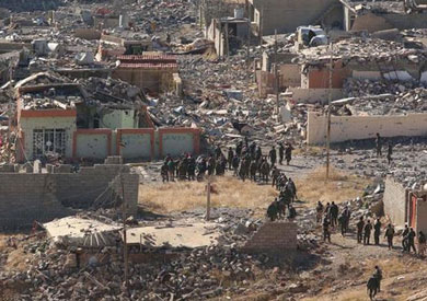 مدينة سنجار تحت الأنقاض: بيوت مهدمة وأثاث وألعاب أطفال ملقاة في الشارع. إنها صور الدمار التي تنتشر في كل مكان في المدينة الإيزيدية. لكن إعلان زيارة رئيس إقليم كردستان مسعود برازاني أعاد الحياة للمدينة، التي تم تحريرها من قبضة مقاتلي تنظيم "الدولة الإسلامية" قبل أسبوع. البرزاني أعلن من فوق جبل سنجار تحرير المدينة على يد جيش البشمركة التابع له، وأكد في نفس الوقت حق إقليم كردستان في إدارة المدينة وإعادة إعمارها حتى يتمكن اللاجئون الذين فروا منها من العودة إليها. سكان القرى المجاورة حلوا بالمدينة لتحية البرزاني وبأيديهم أعلام إقليم كردستان. وفي الوقت الحالي لا يعيش أي شخص في سنجار باسثناء قوات البشمركة المنتشرة في المدينة.