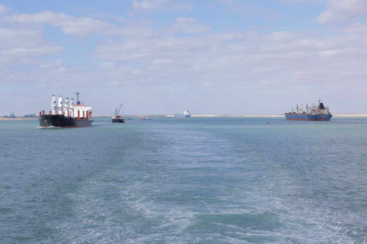 وأضاف ربيع، أن حركة الملاحة بالقناة شهدت عبور سفينة الصب FU XING HAI والسفينة SUVARI BEY من منطقة ازدواج القناة بالبحيرات المرة الصغرى بالمجرى الجديد للقناة، خلال رحلتهما ضمن القافلة المتجهة جنوبا، بالتوازي مع عبور 4 سفن من الناحية الشرقية للقناة الأصلية وهي سفينة الحاويات MATHILDE SCHULTE، والسفينة متعددة الأغراض COSCO SHIPPING TENG Da، وسفينة الصب YANGTZE ALPHA والسفينة RUI FU Cheng.