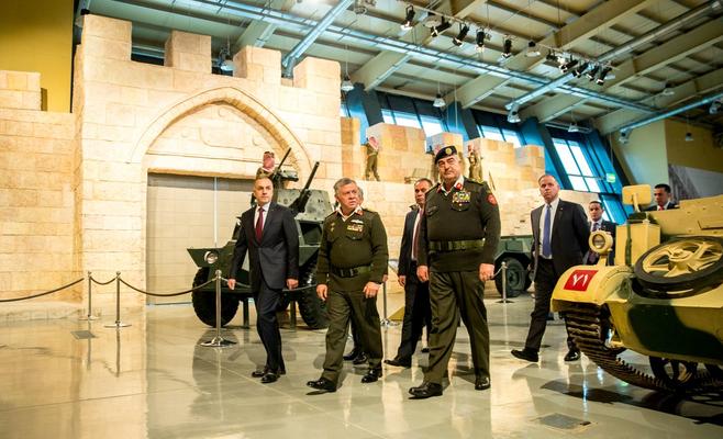 وأفاد بيان للديوان الملكي الأردني، بأن الملك عبدالله الثاني، يرافقه الأمير فيصل بن الحسين، أطلعا على أبرز معروضات المتحف، الذي استغرق بناؤه عشر سنوات، ويشتمل على مقتنيات أصلية ، وأخرى تم ترميمها تعرض تاريخ تطور الدبابات والآليات والمدرعات منذ عام 1915، وبتسلسل تاريخي لتطور صناعتها .