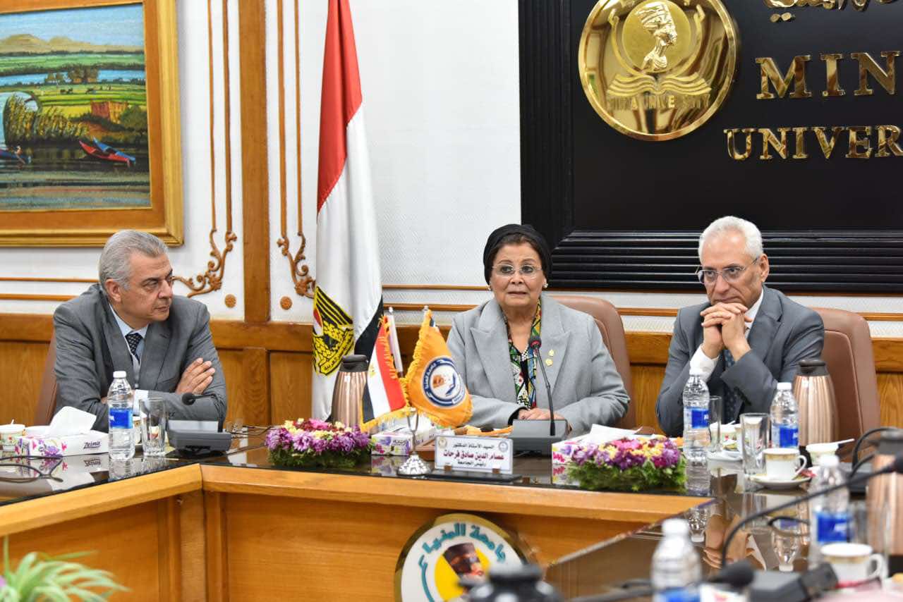ومع الدكتور عصام فرحات رئيس جامعة المنيا، ناقشت تعظيم دور الجامعة في دعم القضية السكانية من خلال التكامل مع أقسام الدراسات السكانية، برامج تمكين المرأة، المشروعات الصغيرة، مراكز تميز الرعاية الأولية، والمنشآت الصحية الصديقة للبيئة، إضافة إلى إعداد دراسة ميدانية للمؤشرات السكانية وتحديد لغة الخطاب المناسبة.