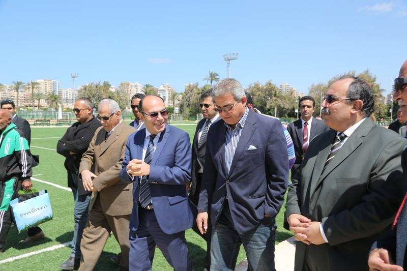 وكان وزير الشباب والرياضة قد بدأ زيارته لمحافظة الإسكندرية صباح اليوم بافتتاح ملعب كرة قدم قانونى لمركز شباب طوسون، وملعب كرة قدم بمركز شباب المعمورة، ووضع حجر أساس إنشاء ملعب قانونى وملاعب فرعية بملحقاتها لنادى الاتحاد السكندري على مساحة خمسة أفدنة بالغابة الترفيهية.