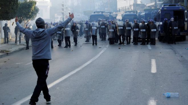 استخدمت قوات مكافحة الشغب الغاز المسيل للدموع وخراطيم المياه لمنع تقدم المتظاهرين الذين احتشدوا اليوم الجمعة، بساحة موريس أودان بوسط العاصمة الجزائرية، باتجاه شارع محمد الخامس ومن ثم التوجه إلى القصر الرئاسي.