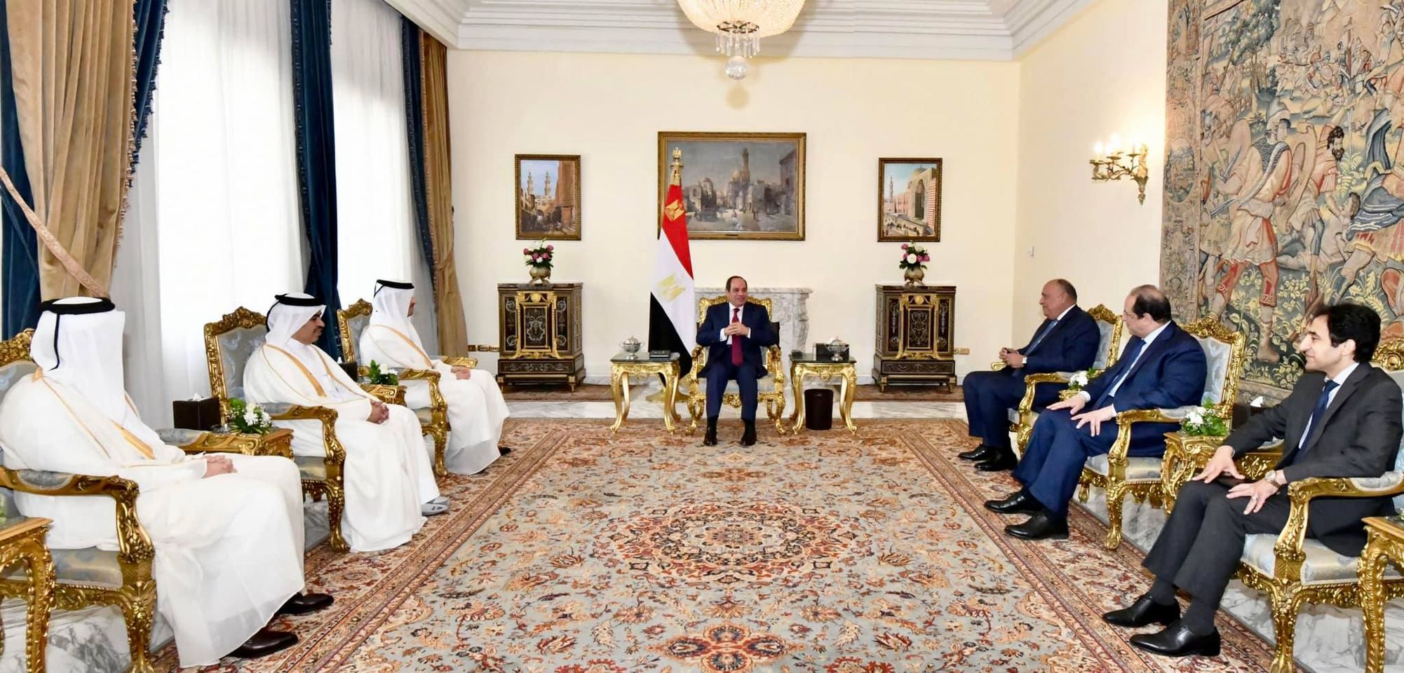 استقبل الرئيس عبد الفتاح السيسي اليوم، الشيخ محمد بن عبد الرحمن آل ثاني، وزير خارجية دولة قطر، وذلك بحضور سامح شكري وزير الخارجية، واللواء عباس كامل رئيس المخابرات العامة، إلى جانب علي بن أحمد الكوري وزير المالية القطري، و عبد الله الخليفي رئيس جهاز أمن الدولة القطري، والسفير سالم بن مبارك آل شافي، سفير دولة قطر بالقاهرة".