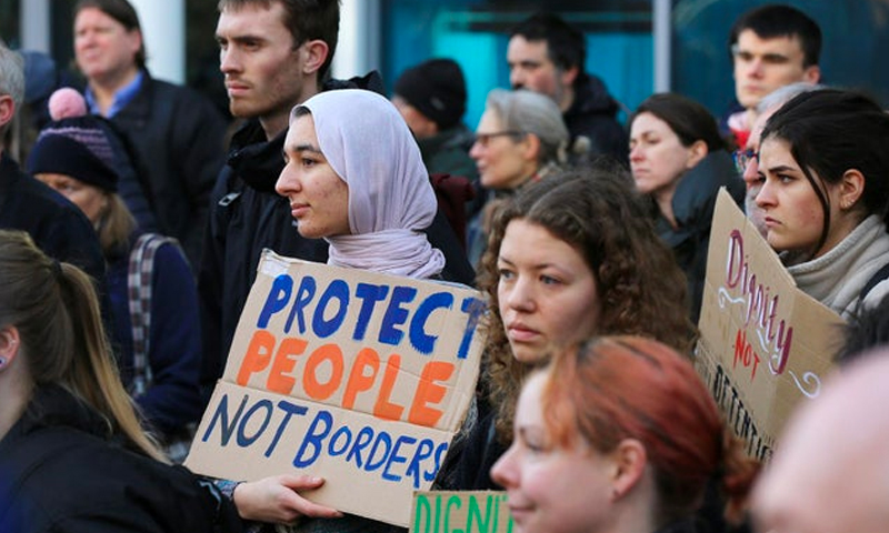 تظاهر اليوم السبت عشرات المواطنين ضد سياسة الهجرة في مدينة دوفر البريطانية.