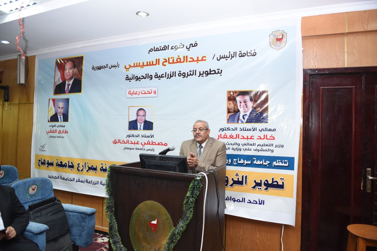 وأضاف عبد الخالق أن الورشة برعاية ودعم كل من: الدكتور خالد عبد الغفار وزير التعليم العالى والبحث العلمى، والذي بدوره أكد على ضرورة مشاركة الجامعات في تنفيذ مشروع الرئيس عبد الفتاح السيسي، والخاص بملف الأمن الغذائي من أجل تحسين حياة الفلاحين والمربين، وتحقيق الاكتفاء الذاتي وزيادة الإنتاجية والاتجاه للتصدير، واللواء طارق الفقي محافظ سوهاج الذي وجه بضرورة التنسيق مع الجهات المعنية من المحافظة، موضحاً أن الدولة وضعت خطة شاملة لتحقيق هذا الحلم الذي سيغير خريطة مصر الإنتاجية زراعياََ وحيوانياََ، بالتعاون بين جهات المجتمع المدني ووزارة الزراعة ونقابة الأطباء البيطريين.