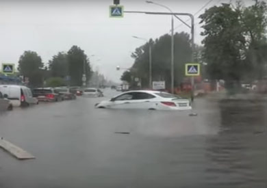 عرضت فضائية «روسيا اليوم»، صباح السبت، مقطع فيديو يرصد آثار الفيضان الذي اجتاح الطريق المؤدي إلى مطار «شيريميتيفو» في العاصمة الروسية موسكو.