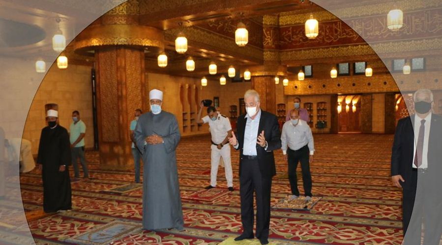 واشاد المحافظ بوعي المواطنين، والتزامهم التام بالإجراءات التي وضعتها وزارة الأوقاف، وناشد المواطنين بضرورة إتباع التعليمات وارتداء الكمامة الواقية داخل وخارج المسجد، حرصًا على سلامتهم.