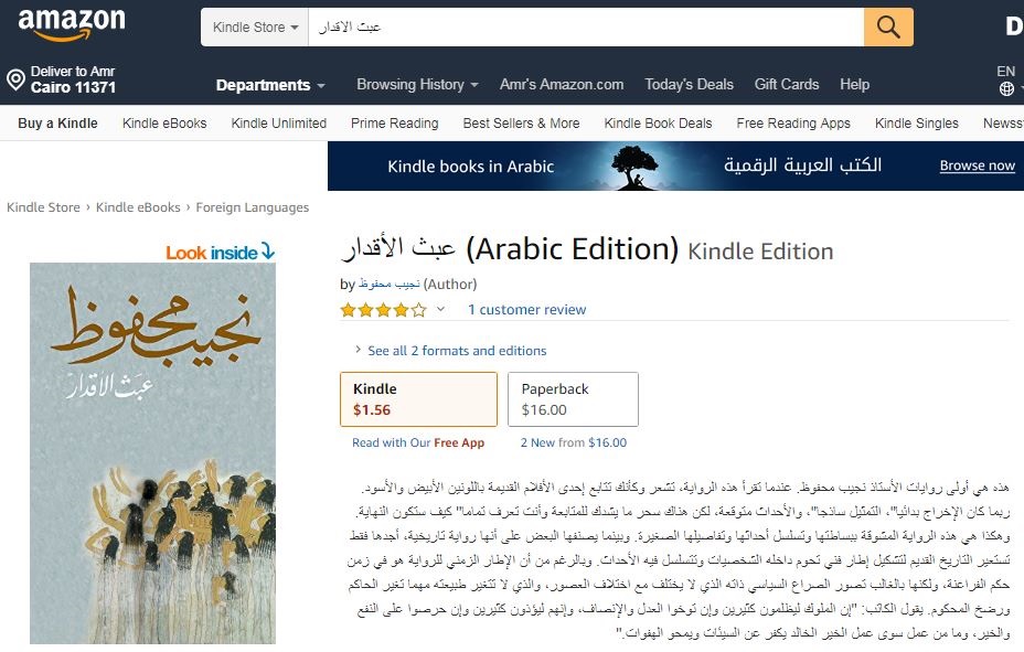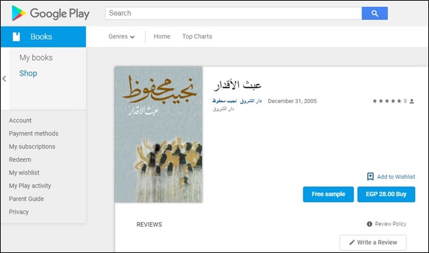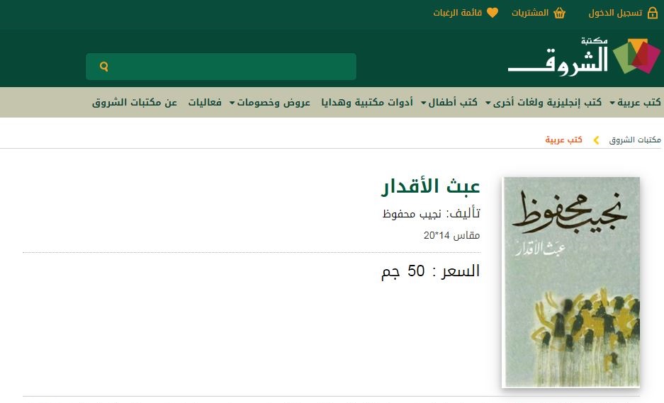 أن دار الشروق أصدرت رواية "عبث الأقدار" وكل إبداعات الأستاذ نجيب محفوظ في شكل كتاب إلكتروني ليستمتع بها القراء في أي مكان في العالم.. وذلك على ثلاث منصات عالمية هي "أمازون" و"جوجل بلاي بوكس" و"فودافون كتبي".