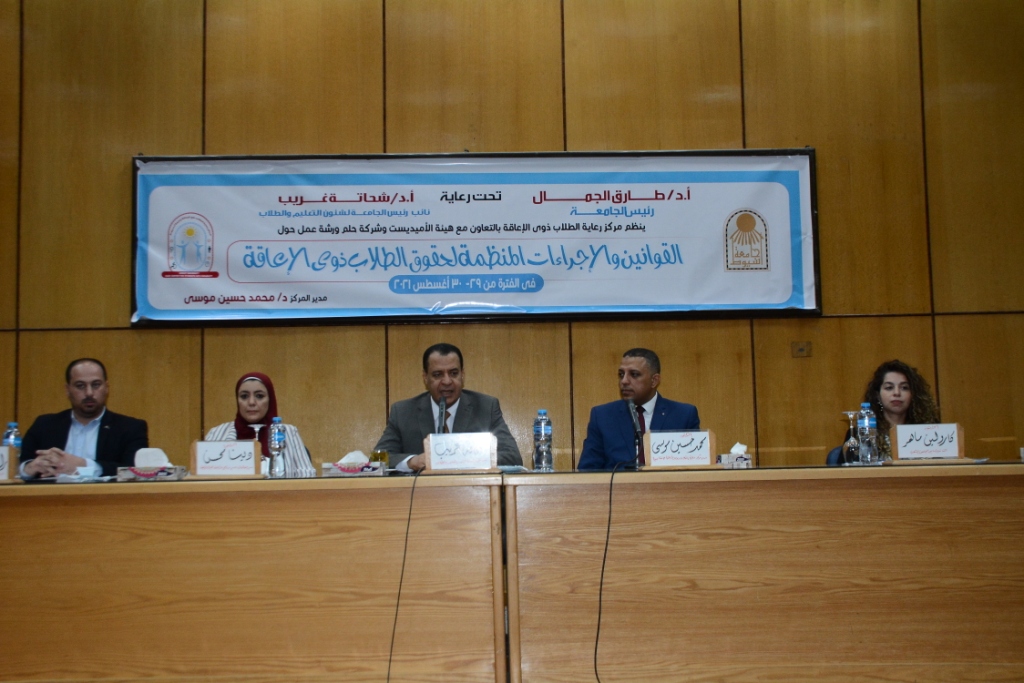 وفى مستهل إعمال الورشة فقد أكد الدكتور شحاتة غريب على مساعي إدارة الجامعة تحت قيادة الدكتور طارق الجمال، والهادفة إلى دعم ورعاية أبنائها من الطلاب من ذوي الاحتياجات الخاصة، وهو الأمر الذي تضمن قيام الجامعة باتخاذ العديد من الإجراءات التي من شأنها تحقيق هذا الهدف، موضحًا أن ذلك جاء من خلال تعاون الجامعة مع هيئة الأميديست ومؤسسة حلم للتعليم والتدريب والاستشارات من خلال برتوكول ثلاثي استهدف إنشاء مركز لذوي الإعاقة بالجامعة، وبالفعل تم إنشاء المركز وقيامه بالدور المنوط به في تحقيق أعلى مستوى من الاندماج للطلاب من ذوي الإعاقة في المجتمع الجامعي.