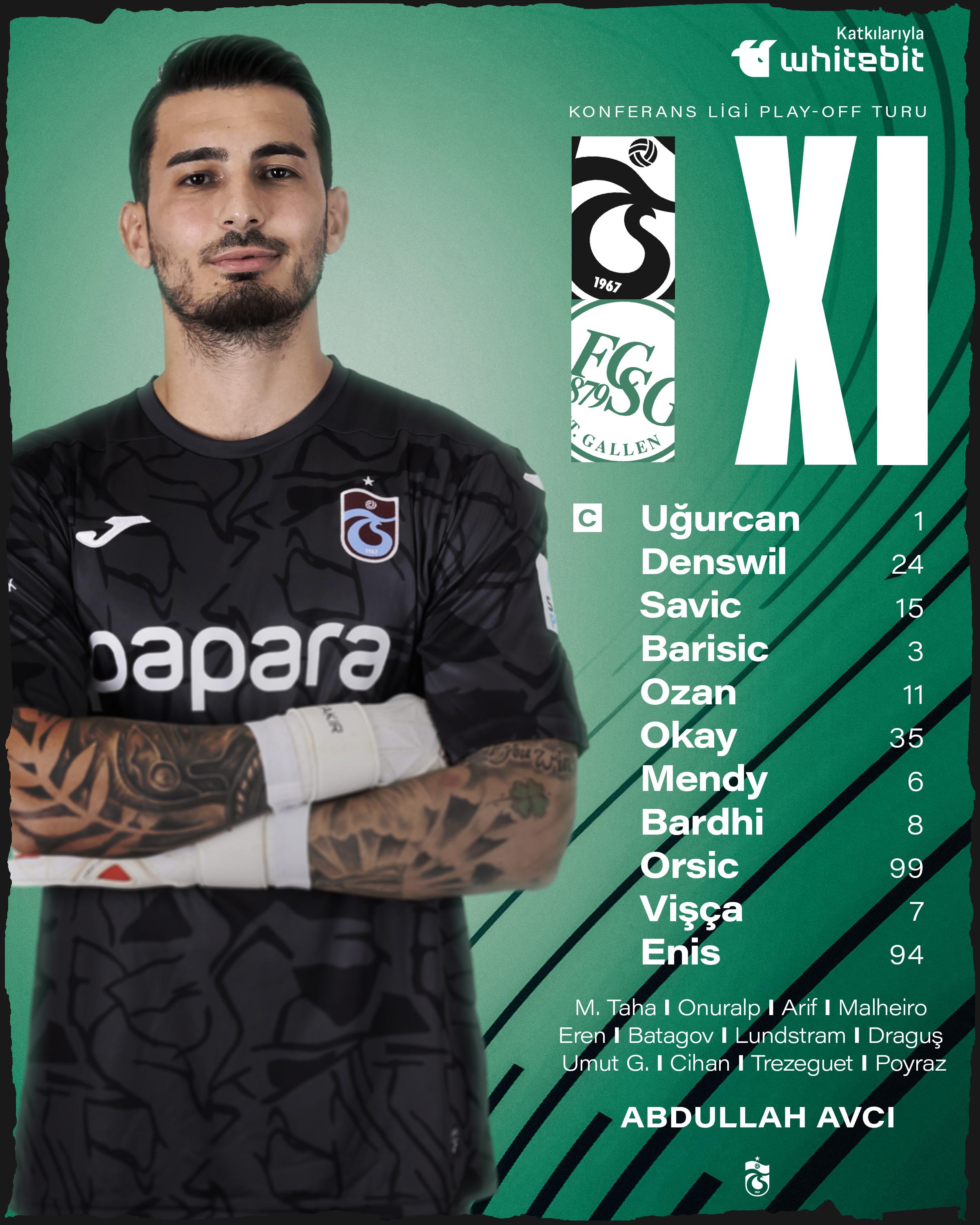 أعلن عبدالله أفجي المدير الفني لفريق طرابزون سبور التركي، التشكيل الذي سيخوض مواجهة سانت جالين السويسري مساء اليوم الخميس، في إياب الدور التمهيدي من بطولة دوري المؤتمر الأوروبي.