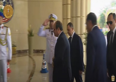 وبمجرد وصول الرئيس السيسي إلى المقر، عُزف النشيد الوطني لجمهورية مصر العربية.