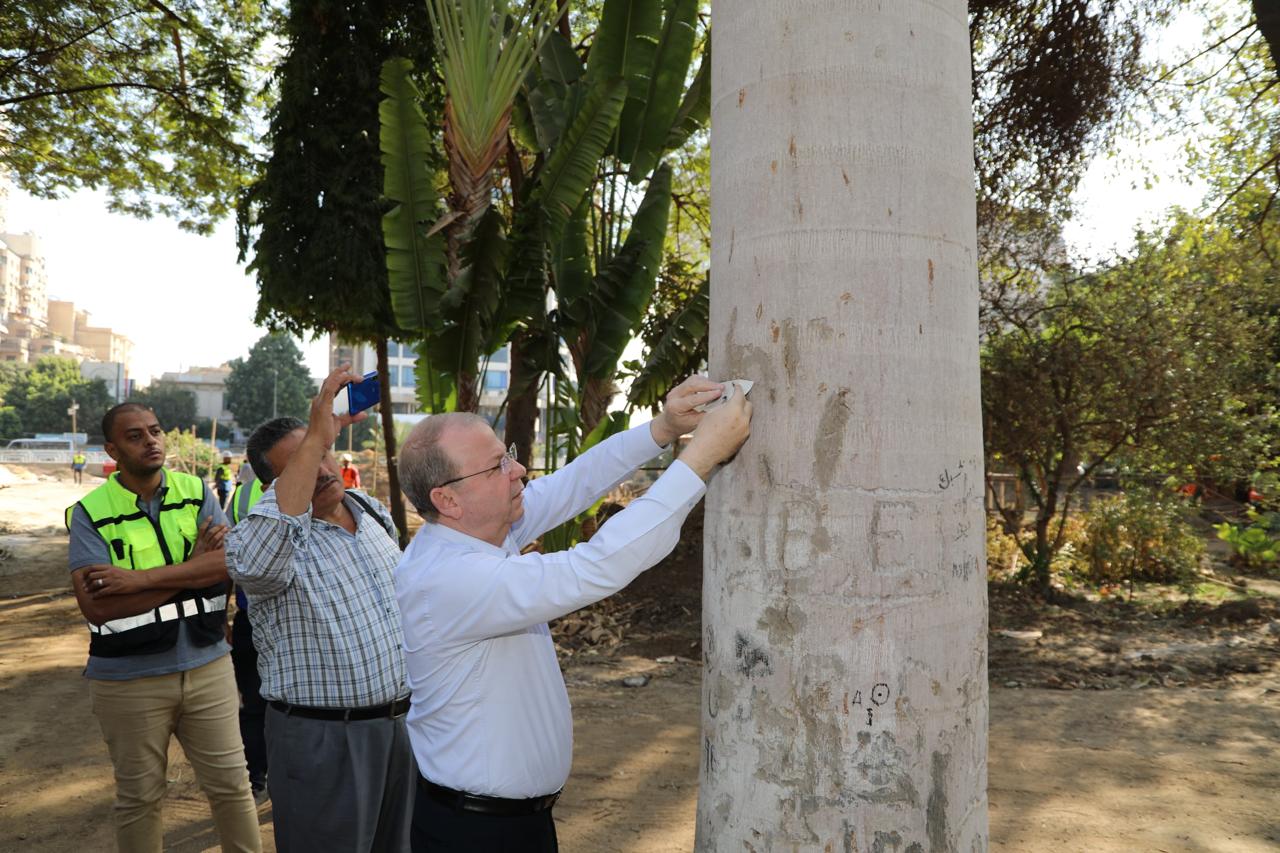 وخلال جولته، تفقد الصياد أعمال التطوير الجاري تنفيذها في الحديقة، واستمع إلى شرح من مسئولي التحالف المصري حول جهود الحفاظ على الأشجار النادرة والمباني ذات الطابع التراثي والأثري في الحديقة.