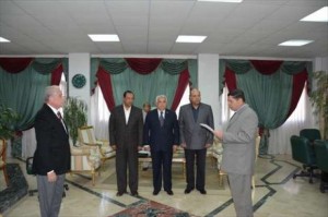 بعدما أثار ما قام به اللواء خالد فوده محافظ جنوب سيناء من أداء اليمين الدستورى لرؤساء مدن طور سيناء وسانت كاترين أمامه من جدل وسخرية عبر مواقع التواصل الاجتماعى، واعتبار أن المحافظ يقوم بتقليد رئيس الجمهورية، أكد اللواء خالد فوده محافظ جنوب سيناء أن قيام بعض رؤساء مدن المحافظة بأداء اليمين الدستورى جاء بناء على قرار جمهورى بالقانون رقم 18 لسنة 2015، بإصدار قانون الخدمة المدنية المادة (16)، والتى مفادها أن يؤدى كل موظف من شاغلى وظائف الإدارة العليا أمام السلطة المختصة وقبل أن يباشر عمله اليمين الآتى «أقسم بالله العظيم أن أحترم القانون والدستور.. وأن أخدم الدولة وأن أحافظ على المال العام وأن أؤدى واجباتى الوظيفية بنزاهة وشفافية وبروح فريق العمل وعلى الوجه الأكمل لخدمة الشعب».