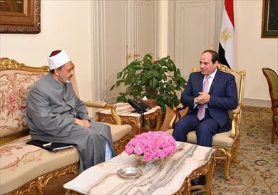 واستقبل الرئيس السيسي فضيلة الإمام الأكبر الدكتور أحمد الطيب شيخ الأزهر، وتناول اللقاء استعراض جهود الأزهر الشريف في نشر صحيح الدين الإسلامي ومواجهة التحديات داخليًّا وخارجيًّا، خاصة الإرهاب والفكر المتطرف.