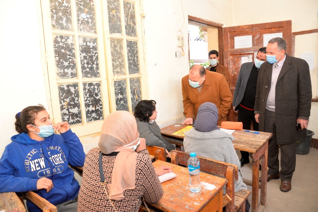 وبدأ المحافظ، جولته بتفقد بعض لجان الامتحانات بمدرسة عصمت عفيفي والتي تتكون من 14 لجنة فرعية منها لجنة للدمج، واستمع إلى بعض الطالبات لمعرفة مدى سهولة الامتحانات والتأكد من عدم وجود أية شكاوى أو عقبات، واطمئن على توافر سبل الراحة للطالبات وتواجد المشرفين والملاحظين باللجان وسط تطبيق الإجراءات الاحترازية والوقائية لمواجهة فيروس كورونا.