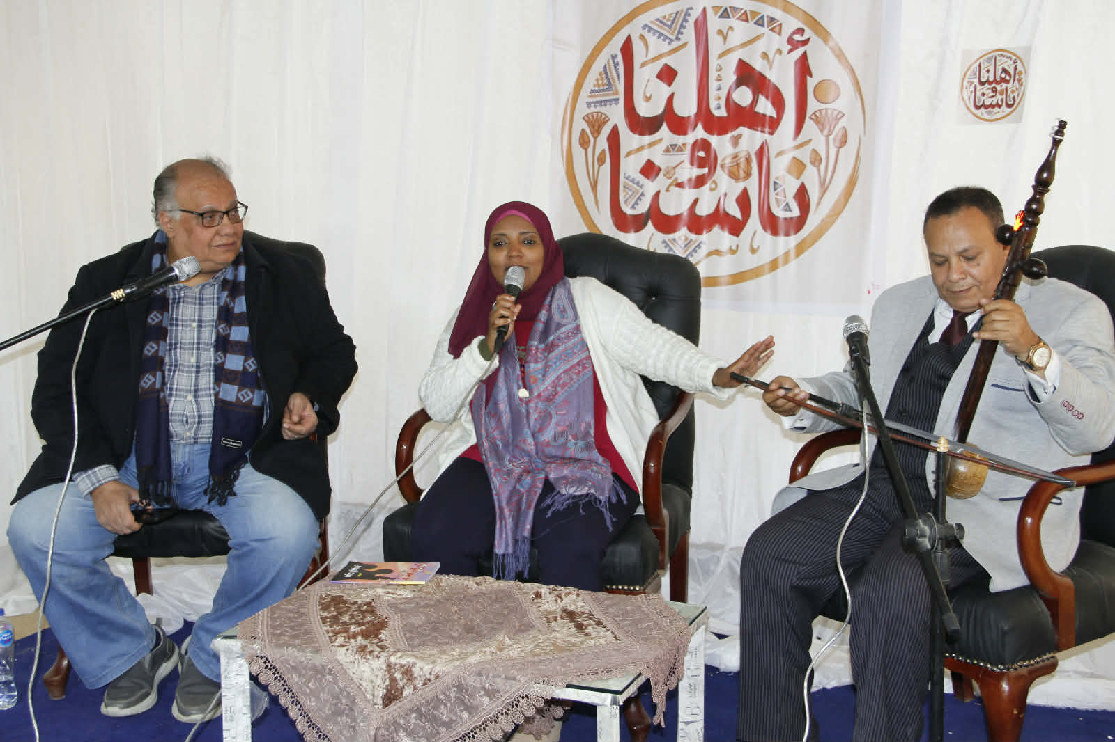 بدأت الدكتورة دعاء محفوظ اللقاء بالترحيب بالحضور، مؤكدة أن برنامج “أهلنا وناسنا” يهدف إلى التعرف على ثقافة كل محافظة مصرية من خلال أهلها ومبدعيها، مشيرة إلى أن اختيار الفيوم جاء لأنها من المحافظات التي لم تحظَ بالاهتمام الكافي، وأن الهدف من هذه الندوة هو إبراز فنونها وخصوصيتها بعيون أبنائها، وأشادت ببداية الندوة التي جمعت بين عزف الربابة للدكتور إبراهيم عبد العليم وإلقاء الشعر للشاعر محمد حسني، ووصفتها بأنها بداية مختلفة لم تحدث في أي ندوة سابقة ضمن البرنامج، وهو ما منح اللقاء طابعًا فنيًا مميزًا منذ اللحظة الأولى.