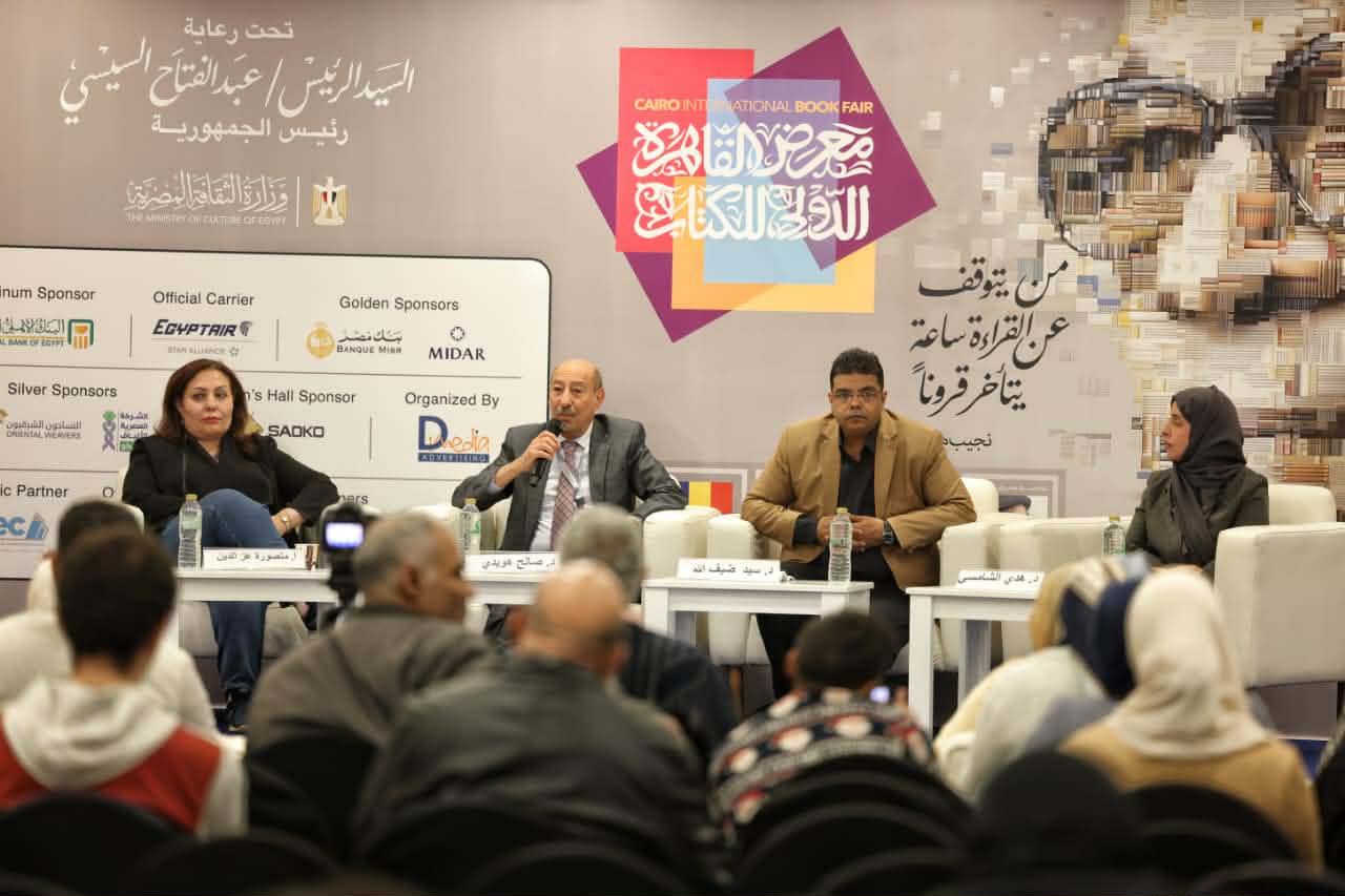 استضافت القاعة الرئيسية، اليوم، ضمن فعاليات معرض القاهرة الدولي للكتاب في دورته السابعة والخمسين، ندوة بعنوان «نجيب محفوظ والتراث الإنساني... الروافد الغربية والتراثية في تكوين محفوظ»، وذلك ضمن محور «شخصية المعرض».