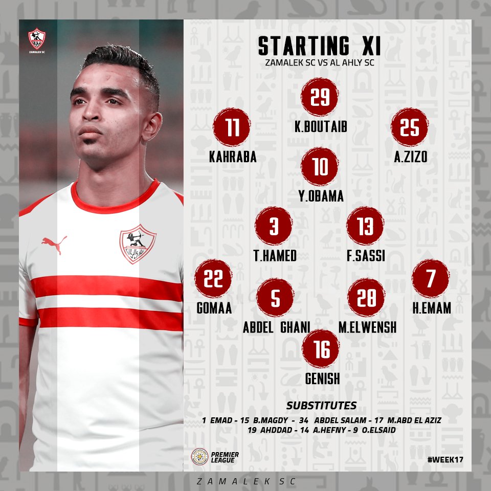 خط الوسط: عمرو السولية - حسام عاشور - ناصر ماهر - رمضان صبحي