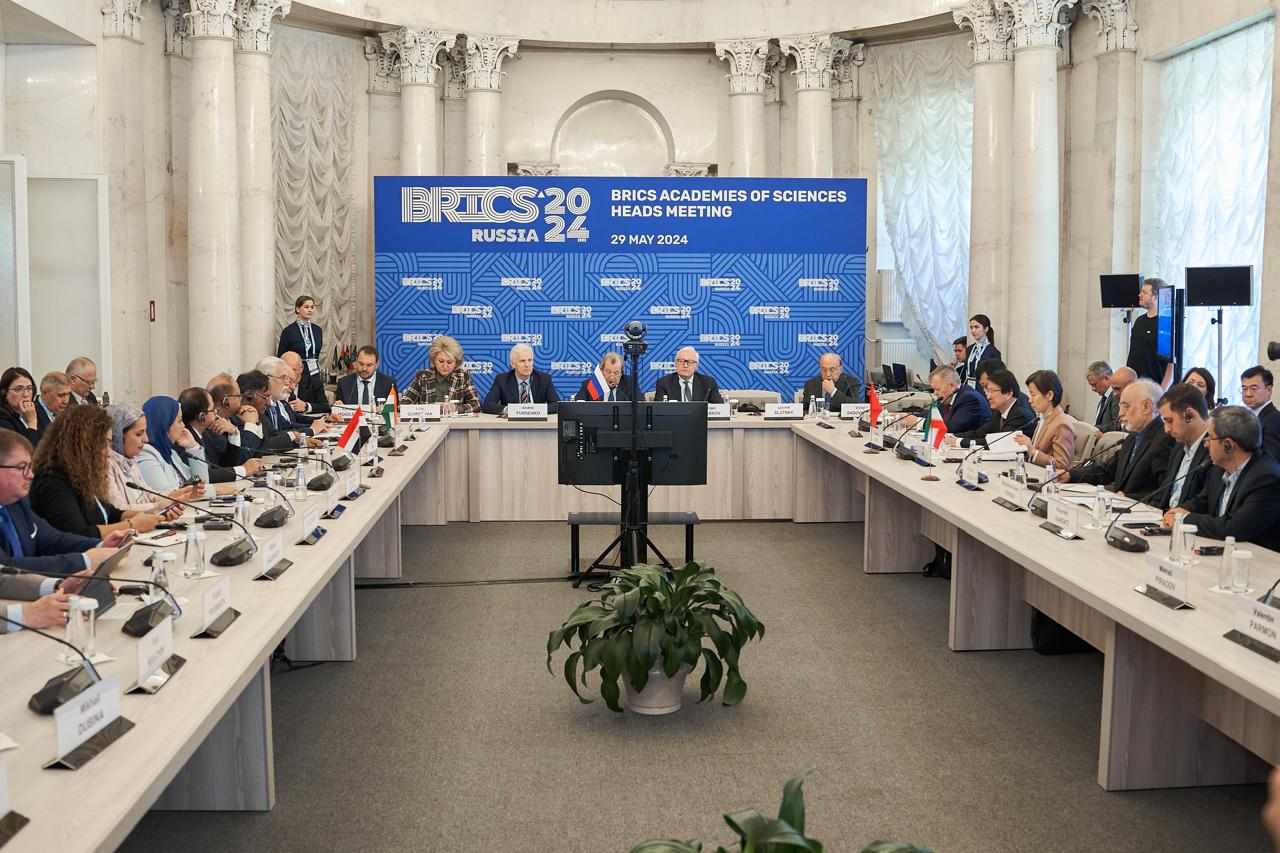 وأشار الوزير إلى أن انضمام مصر كدولة عضو إلى تجمع دول "بريكس" بالتزامن مع بدء الرئاسة الروسية للتجمع ابتداء من الأول من يناير 2024، وعقد الاجتماع على مدار يومي 29 و30 مايو الجاري، تحت شعار الشراكة الأكاديمية من أجل السلام والتنمية المتبادلة والازدهار بالأكاديمية الروسية للعلوم، بالتعاون مع مركز البحث الوطني Kurchatov Institute، وينعقد اجتماع قادة أكاديميات العلوم بشكل دوري منذ عام 2018 كأداة لخلق وتنمية سبل التعاون العلمي بين الدول الأعضاء بمجموعة " بريكس" والتي تضم في عضويتها دول البرازيل، وروسيا، والهند، والصين، وجنوب إفريقيا، مؤكدًا أن أهم ما يميز الاجتماع هذا العام هو حضور الدول التي انضمت حديثًا إلى مجموعة " بريكس".