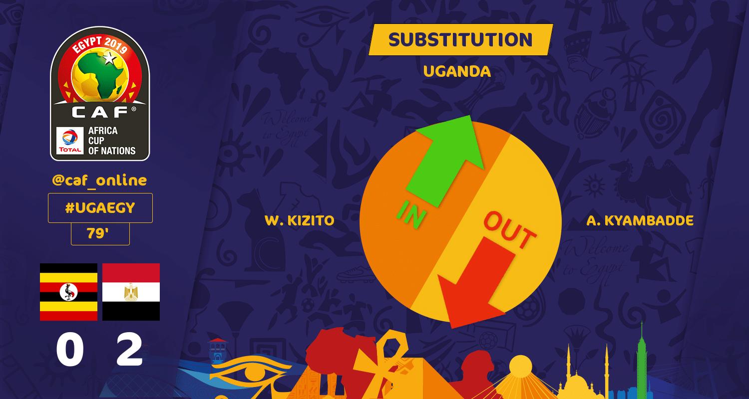 - الدقيقة 79 التبديل الثالث لمنتخب أوغندا بخروج ألان كيامبادي ونزول لواجا كيزيتو