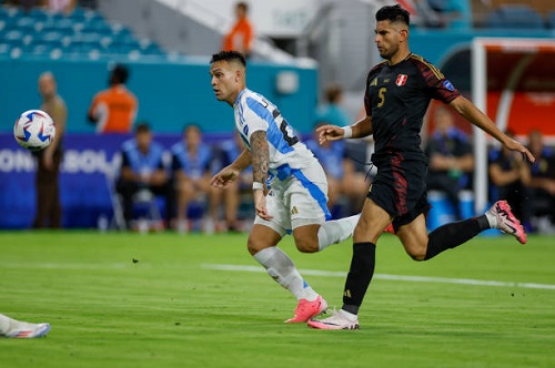 وتغلب منتخب الأرجنتين 2 / صفر على منتخب بيرو مساء أمس السبت بالتوقيت المحلي (صباح اليوم الأحد بتوقيت جرينتش) في الجولة الثالثة (الأخيرة) بالمجموعة الأولى من مرحلة المجموعات للبطولة.