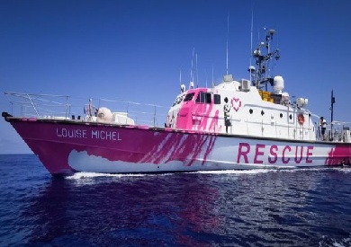 وكان فنان الغرافيتي الشهير قد مول سفينة الإنقاذ تلك للمساعدة في إنقاذ اللاجئين في البحر الأبيض المتوسط.