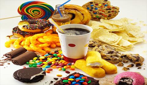 الأغذية المحتوية على نسبة عالية من السكر ترفع نسبة السكر في الدم ما يؤدي إلى زيادة إفراز الدهون وظهور حب الشباب، ويفضل استبدالها بالخضار والفاكهة الطازجة.