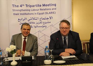 ترأس محمد سعفان وزير القوى العاملة، وإيريك أوشلان، مدير مكتب منظمة العمل الدولية بالقاهرة، اليوم الخميس، الاجتماع الثلاثي الرابع لمشروع "تعزيز علاقات العمل ومؤسساتها في مصر"، بحضور جمال أغماني الاستشاري الدولي بالمنظمة، وبمشاركة أكثر من 60 من ممثلي الهيئات الثلاثية المكونة لمنظمة العمل الدولية "الحكومة ممثلة في وزارة القوى العاملة، ومنظمات أصحاب العمل، والنقابات العمالية"، بالإضافة إلى خبراء المنظمة.