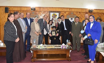 قامت الدكتورة جاكلين عازر محافظ البحيرة، بزيارة وتكريم نيافة الأنبا باخوميوس مطران البحيرة ومطروح والخمس مدن الغربية، بمقر كنيسة ماري مرقس في دمنهور، بحضور الدكتور حازم الديب نائب المحافظ، واللواء حسن موافي السكرتير العام، ولفيف من أعضاء مجلسي النواب والشيوخ.