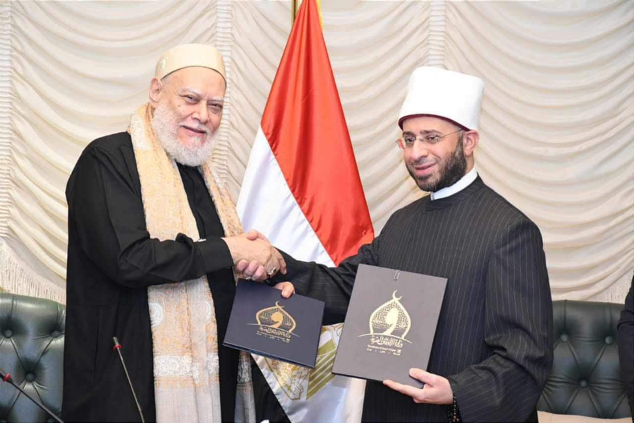 وقع وزير الأوقاف الدكتور أسامة الأزهري، والدكتور علي جمعة رئيس مجلس أمناء مؤسسة مصر الخير، بروتوكول تعـــاون مشترك بين مؤسسة مصر الخير وشركة أرض الخير للتوزيع والتجارة بشأن توريد ونقل لحوم الإطعام والصدقات لحساب وزارة الأوقاف من مزارع شركة أرض الخير التابعة لمؤسسة مصر الخير للعام 1446 هـ - 2024 م.