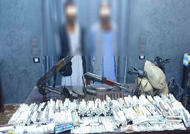 القت الأجهزة الأمنية بأسوان القبض على عنصرين إجراميين وبحوزتهما بندقيتين آليتين و50 كيلو لمخدر البانجو و290 قرصا بقصد الإتجار.
