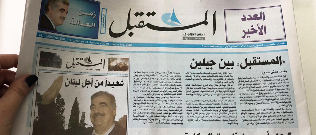 أصدرت صحيفة "المستقبل" اللبنانية اليوم الخميس عددها الورقي الأخير خالياً من الأخبار، ومليئا بالذكريات وكلمات الوداع.