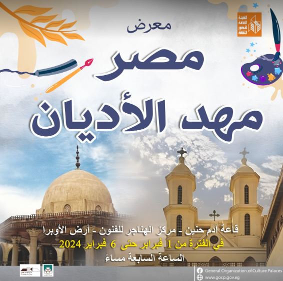 تقيم الهيئة العامة القصور الثقافة برئاسة عمرو البسيوني معرض "مصر مهد الأديان" فى السابعة مساء غد الخميس بقاعة آدم حنين بمركز الهناجر بشاحة دار أوبرا القاهرة، ويستمر المعرض حتى 6 فبراير المقبل ضمن برامج النشاط لوزارة الثقافة.