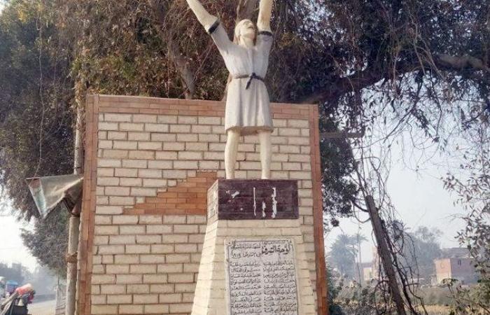 في مدخل القرية يوجد تمثال يعتبره الأهالي رمزًا لصمود الفلاحين أمام قوات الاحتلال الإنجليزي، وتوجد أيضا لوحة عليها أسماء الشهداء الذين سقطوا أثناء الدفاع عن بلدهم تخليدا لذكراهم.