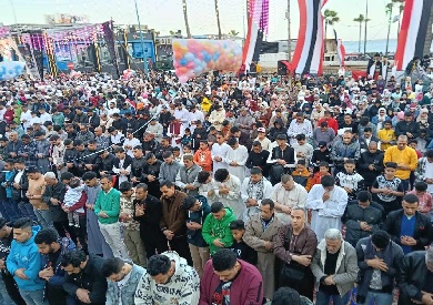 أدى الآلاف من المواطنين، اليوم الاثنين، صلاة عيد الفطر المبارك في ساحة مسجد القائد إبراهيم بمنطقة محطة الرمل وسط محافظة الإسكندرية.