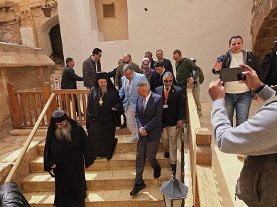 وأشاد المحافظ بالروحانيات التي يتمتع بها الدير، مشيرا إلى أنه نموذجا فريدا يجسد التسامح الديني على أرض سيناء المقدسة، كونه يجمع بين أجراس الكنيسة الكبرى، وصوت الأذان بالمسجد الفاطمي.