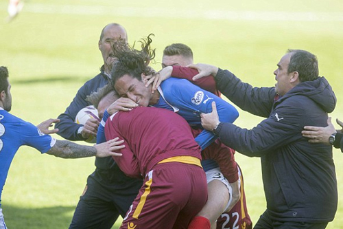 شهدت مباراة النهائية لمرحلة "البلاى أوف" بالدورى الأسكتلندى والخاصة بتحديد الهابطين والصاعدين أحداث عنف مؤسفة.