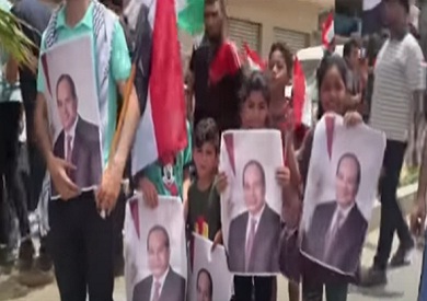 وظهر أطفال غزة، خلال الوقفة التي نُظمت اليوم الاثنين، وهم يحملون صورة الرئيس عبدالفتاح السيسي، ويلوحون بالأعلام المصرية على أنغام أغنية «تسلم الأيادي».