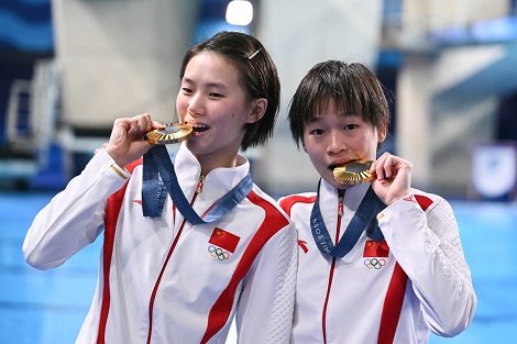 توجت الصين بالميدالية الذهبية، لمسابقة الغطس المتزامن من منصة على ارتفاع عشرة أمتار للسيدات، اليوم الأربعاء، بأولمبياد باريس 2024.