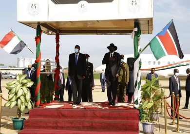 وحسبما ذكرت الصفحة الرسمية لمجلس السيادة السوداني الانتقالي، عبر موقع "فيسبوك"، كان في استقبال الوفد لدى وصوله مطار جوبا الدولي الرئيس سلفاكير مياردت رئيس جمهورية جنوب السودان، والمستشار توت قلواك رئيس لجنة الوساطة الجنوبية، والقائم بأعمال سفارة السودان لدى جوبا جمال مالك، وعدد من كبار المسؤولين بدولة جنوب السودان.