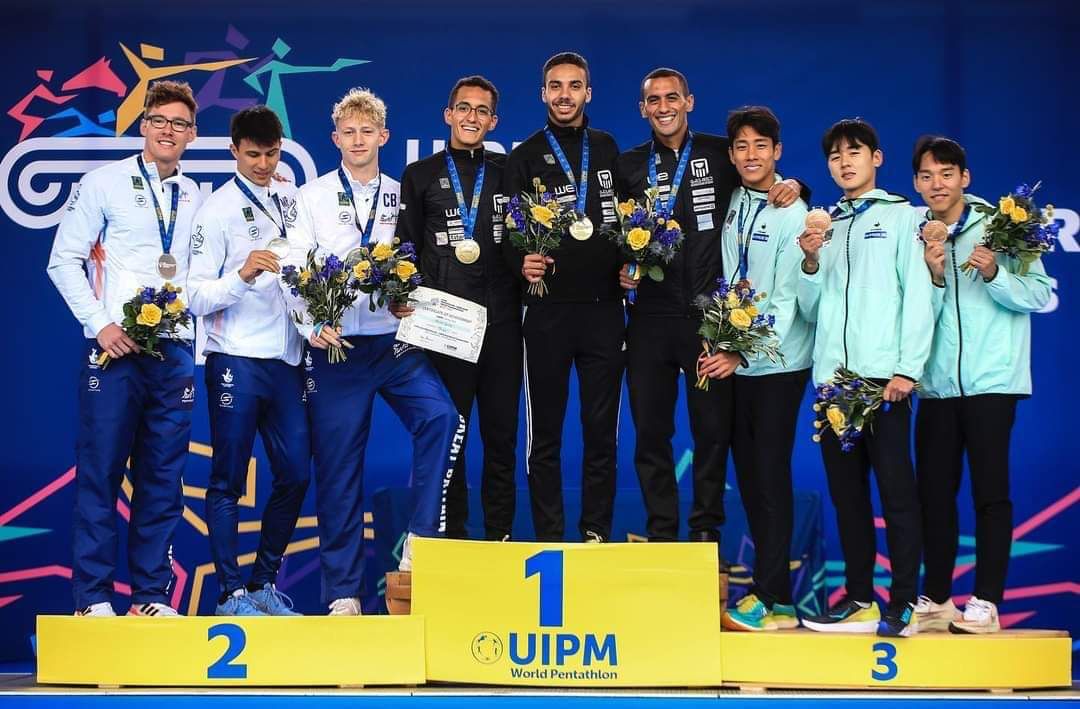 وجرى تتويج الثنائي أحمد ومحمد الجندي أعضاء المنتخب الوطني للخماسي الحديث، الطالبين بكلية تكنولوجيا الأعمال بجامعة مصر للمعلوماتية، بالميدالية الذهبية منافسات فرق الرجال بعد تحقيق 4530 نقطة، حيث تفوق المنتخب المصري على نظيره البريطاني صاحب الأرض والذي إحتل المركز الثاني برصيد 4450 نقطة، فيما حل منتخب كوريا الجنوبية بالمركز الثالث بنفس الرصيد من النقاط.