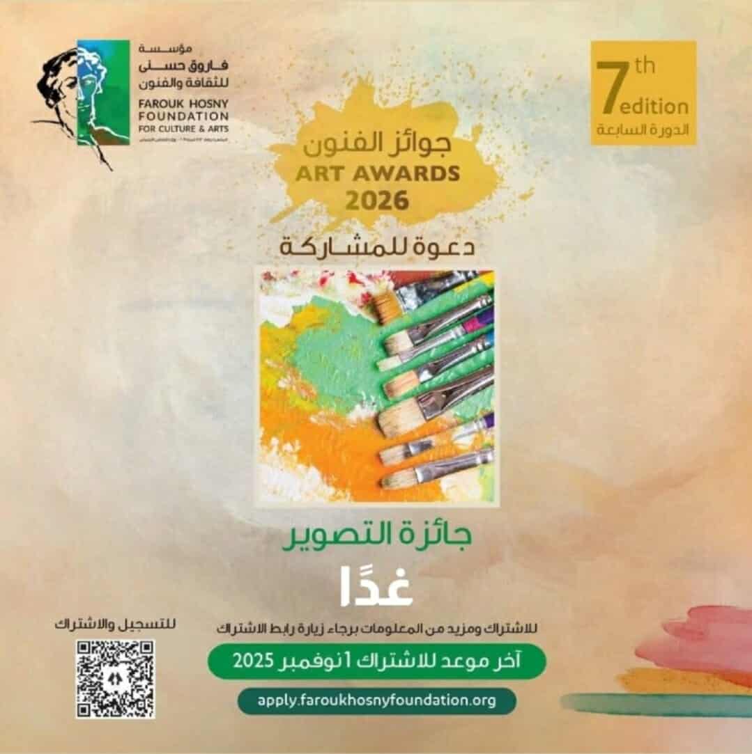 تغلق مؤسسة فاروق حسني للثقافة والفنون غدًا، السبت، الأول من نوفمبر 2025، باب التقديم للمشاركة في جائزة التصوير ضمن جوائز الفنون في دورتها السابعة لعام 2026.