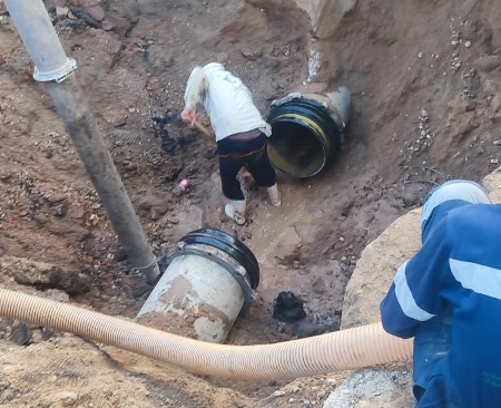 تابع اللواء إسماعيل كمال، محافظ أسوان، الجهود المكثفة التي قامت بها فرق الصيانة الفنية بشركة مياه الشرب والمقاولون العرب في التعامل مع الكسر المفاجئ الذي أصاب خط الطرد الرئيسي لمحطة الكرور للصرف الصحي رقم (11) بميدان المدخل الجنوبي، عند منطقة الشرطة العسكرية، بقطر 600 مللي ونوعية GRP.